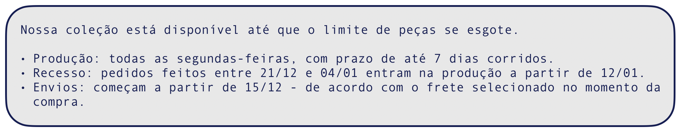 *Caso seu tamanho não esteja nas opções, por favor o envie pelo campo de mensagem quando finalizar a compra.